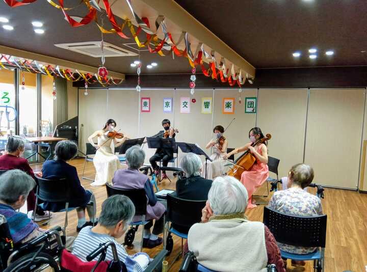 先日1月26日には、今年初めてのイベントが開催されて・・・・なんと!なんと!!なんと!!!東京交響楽団のみなさんが来てくださいました!!まごころ年賀当選者のお客様は生で、残念ながら当選しなかったお客様はライブ配信で鑑賞しました。心臓に響く素晴らしい音色を聴かせていただき、お客様も久々の生演奏に感動して涙する人も・・・お客様の喜んでいる姿を見て、私たち職員も感激しました。来年も来てほしいなぁ・・・