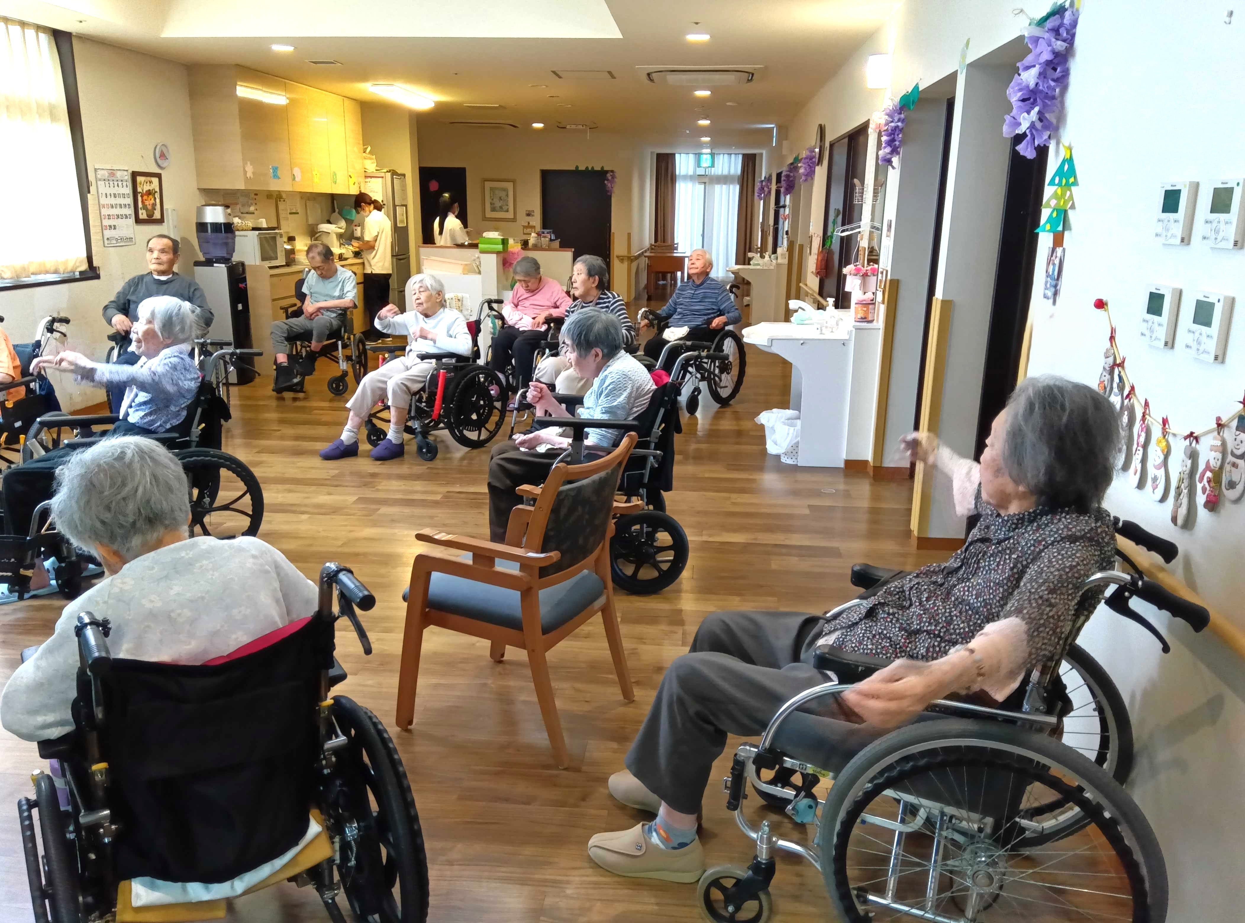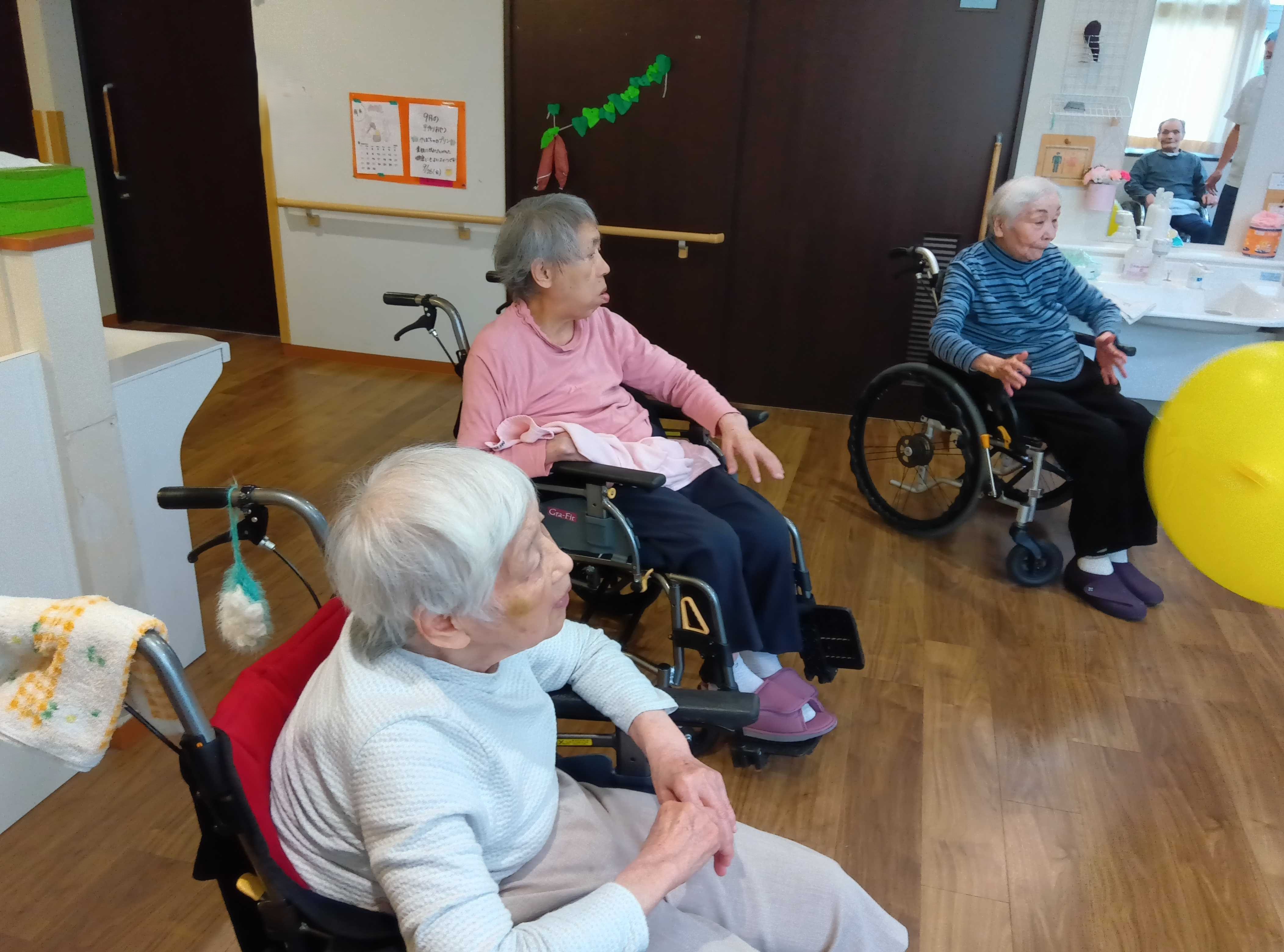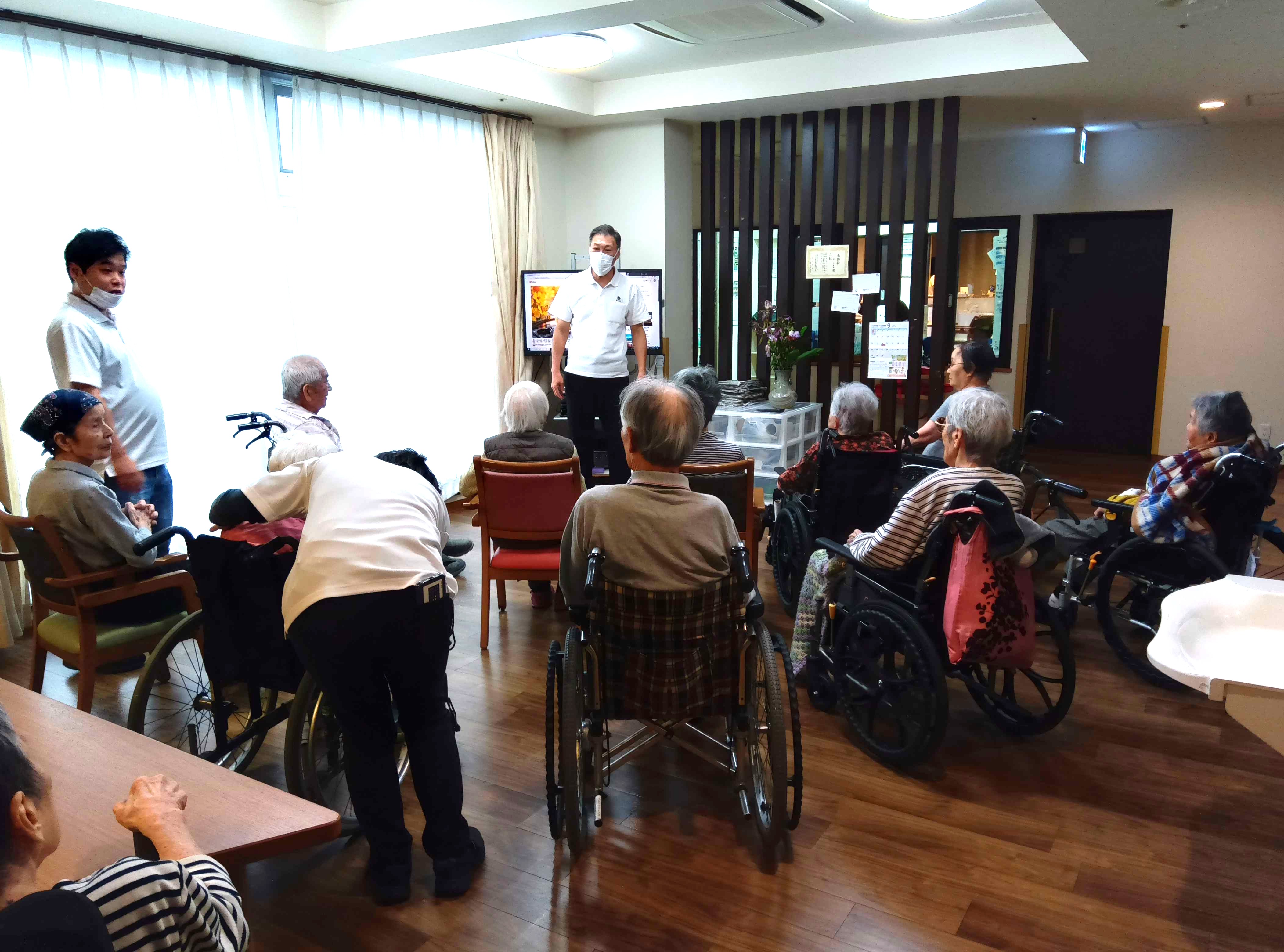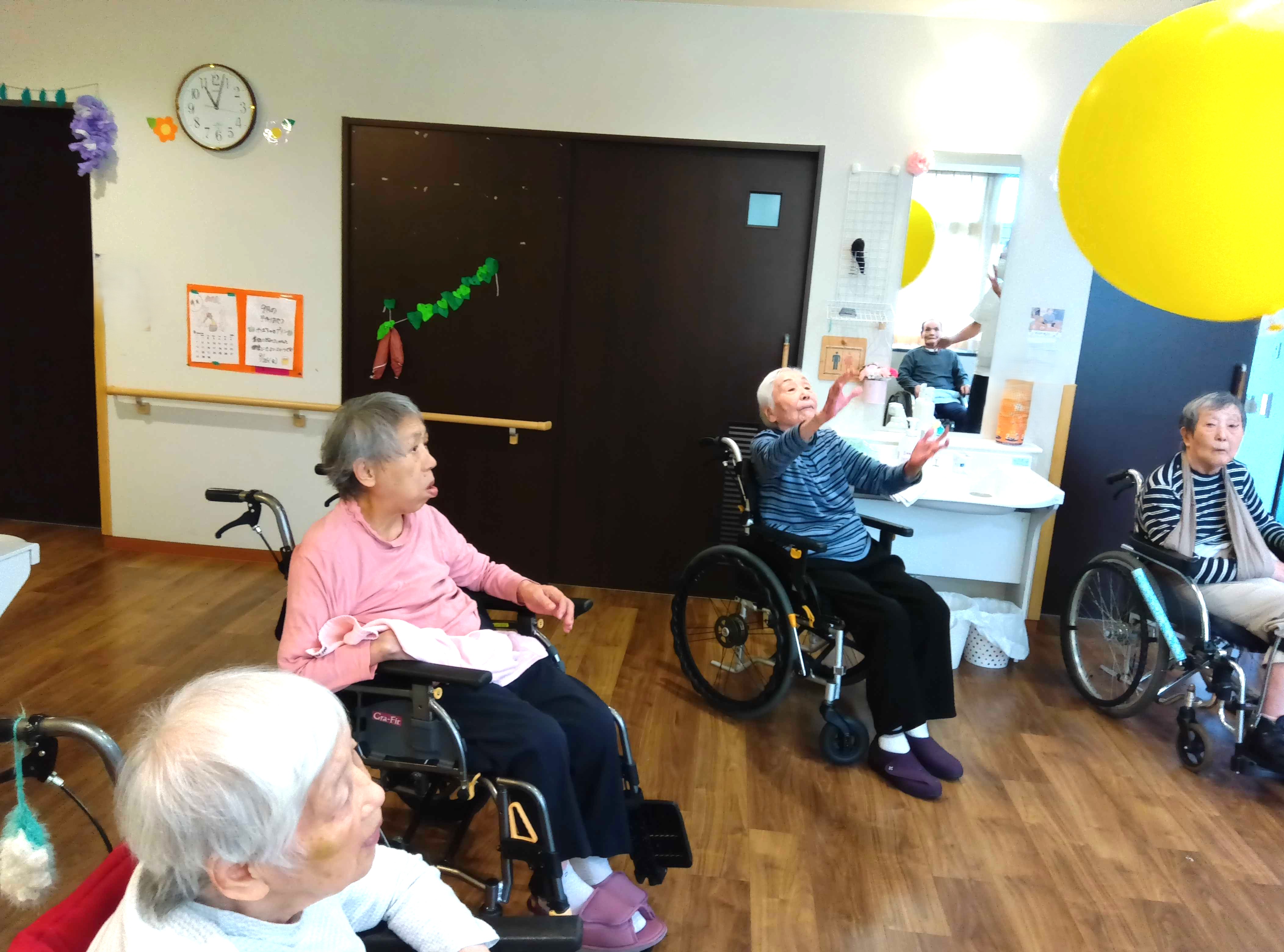 こんにちは♪3・4番街ではこの秋の季節に合わせてナイス職員、杉山リーダーと利用者様と折り紙をおり秋の設を作りました。