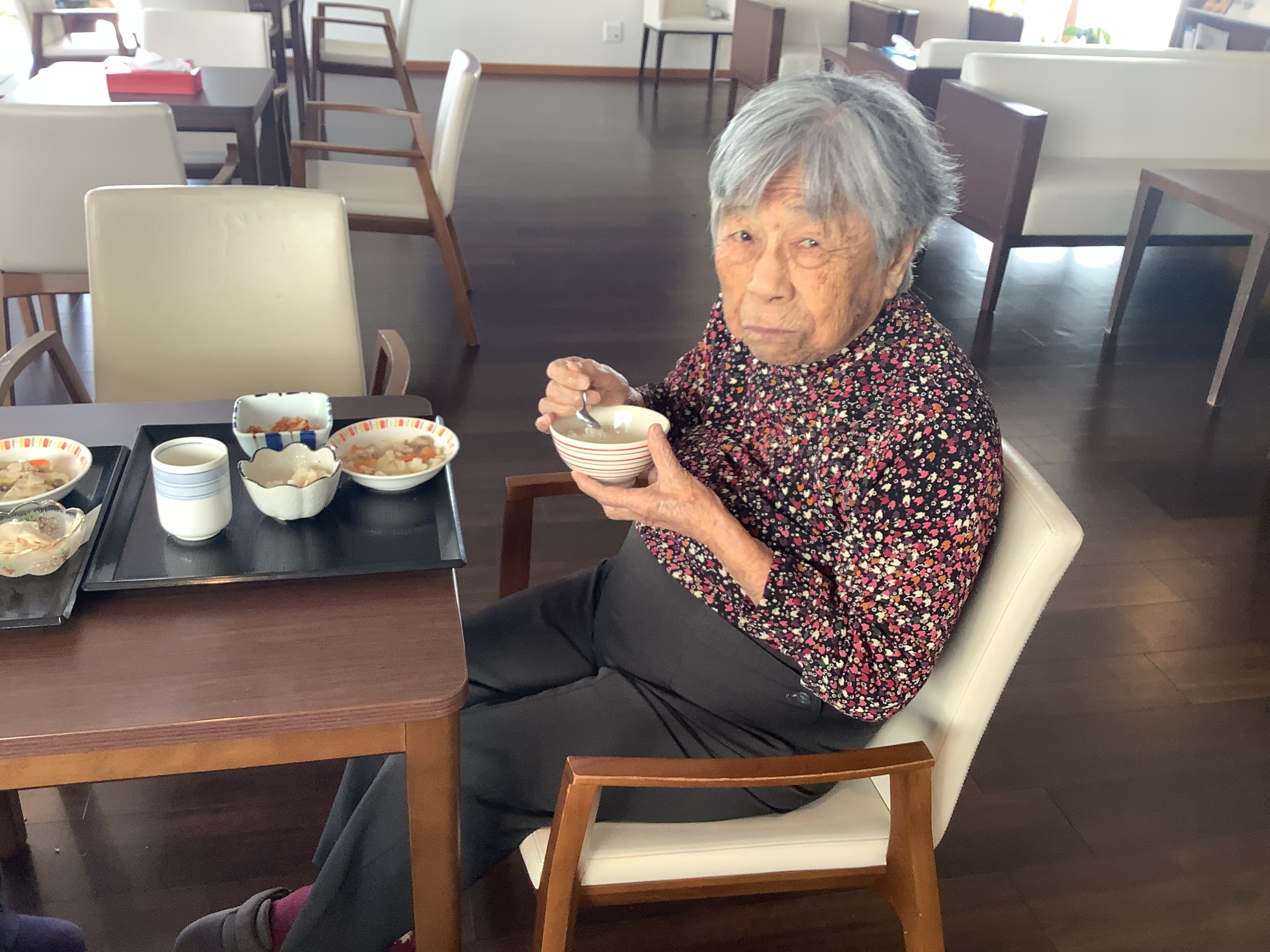 施設に戻られてから早速、適した食形態に変更し、完食されました。