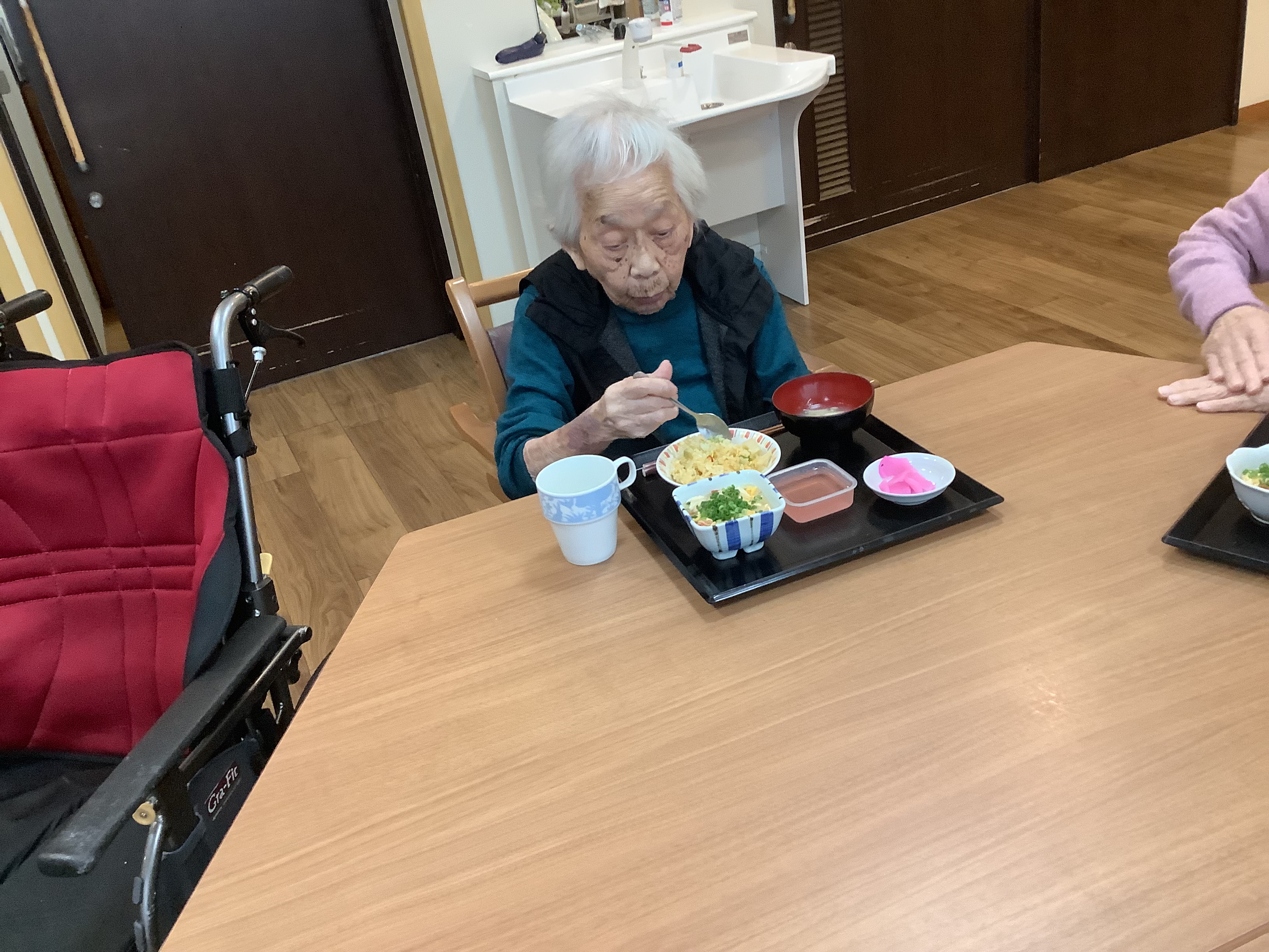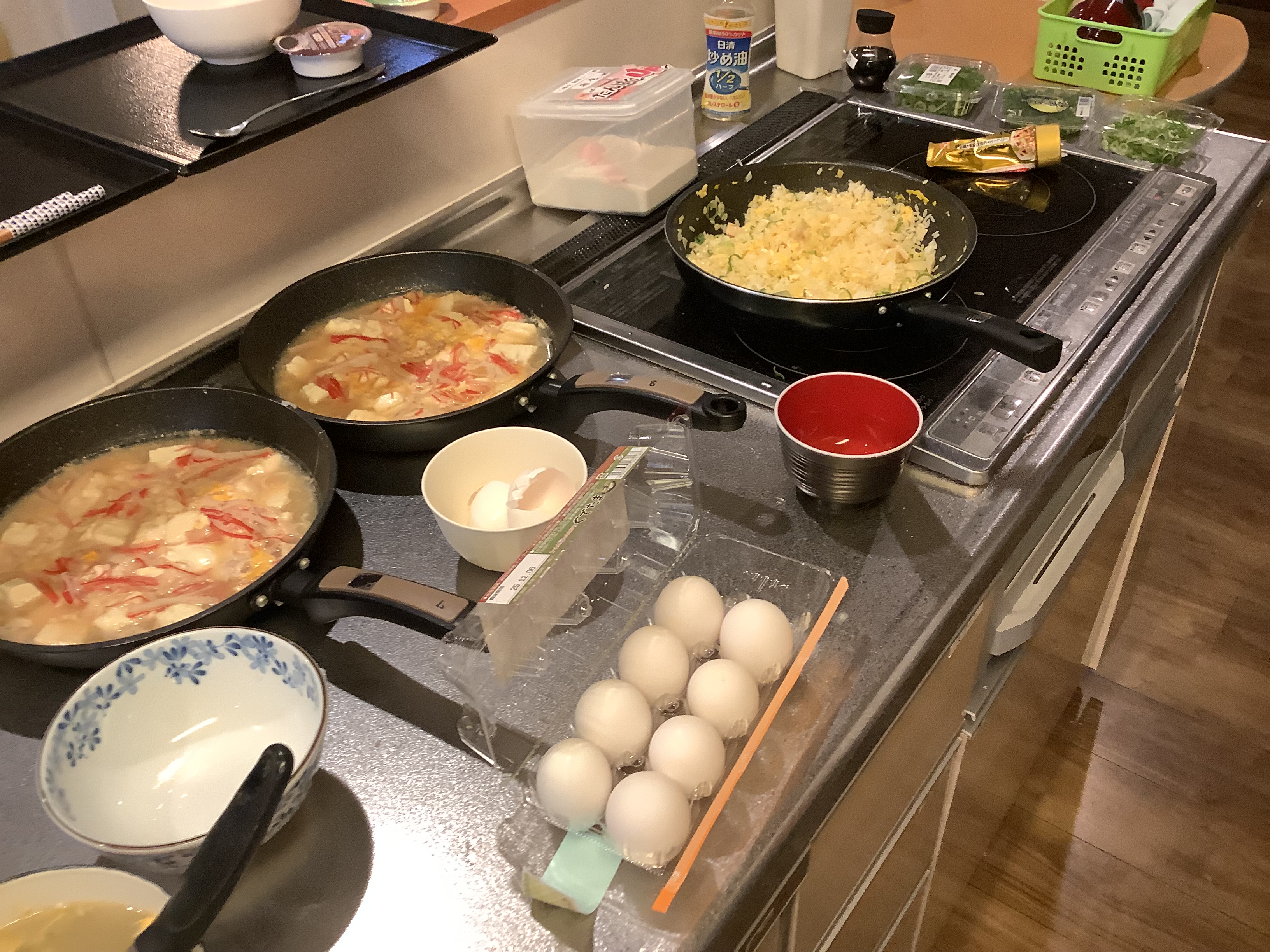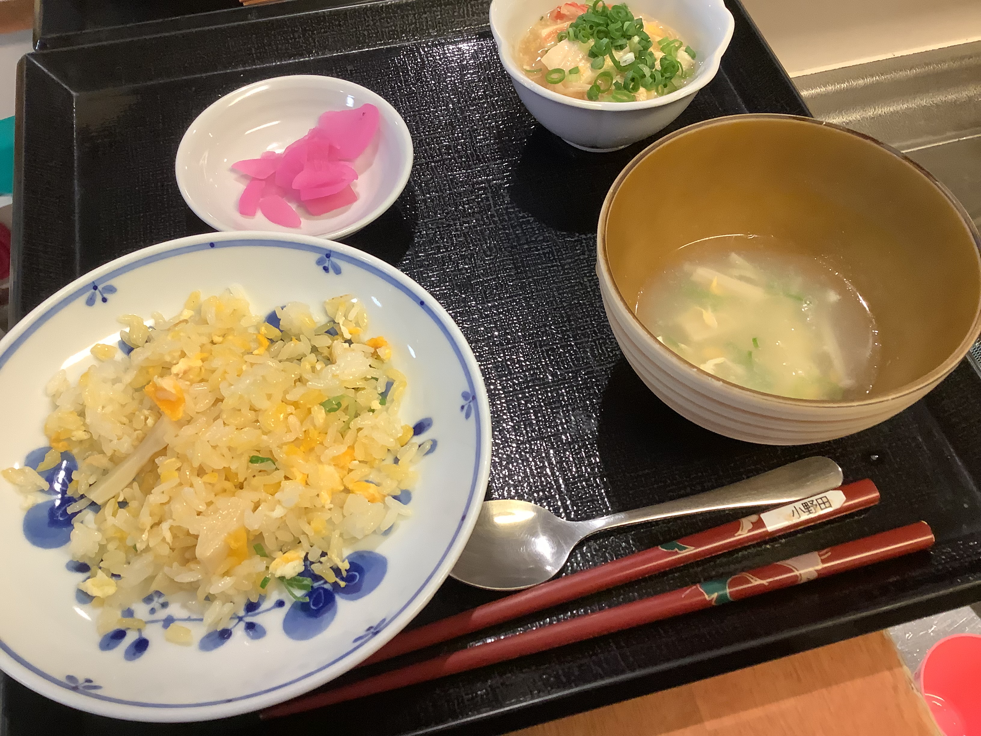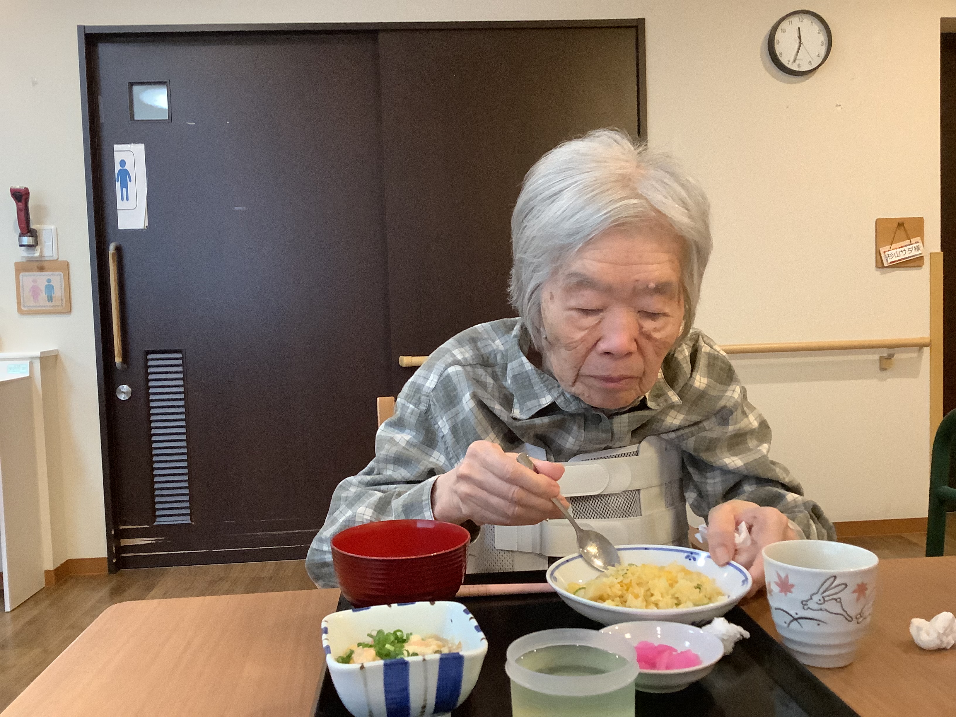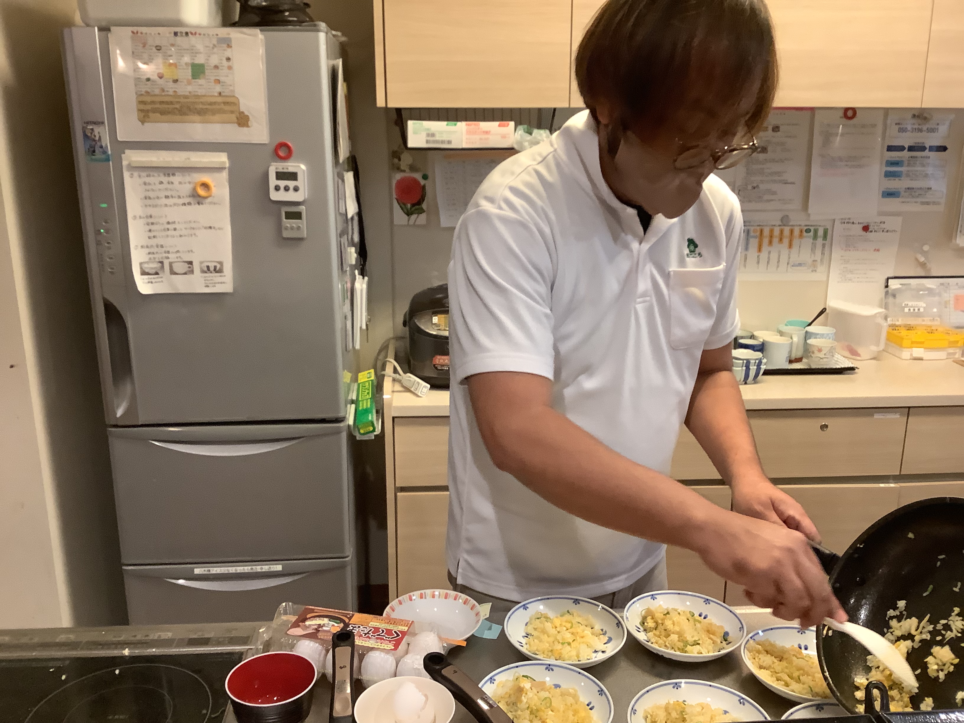 「美味しい中華が食べたい‼️」皆さまの熱いご要望にお応えして、職員が中華料理を振る舞いました。メニューはチャーハン🍙 麻婆豆腐に中華スープです皆さま、満足気な表情☺️職員、愛を込めて調理しました♪