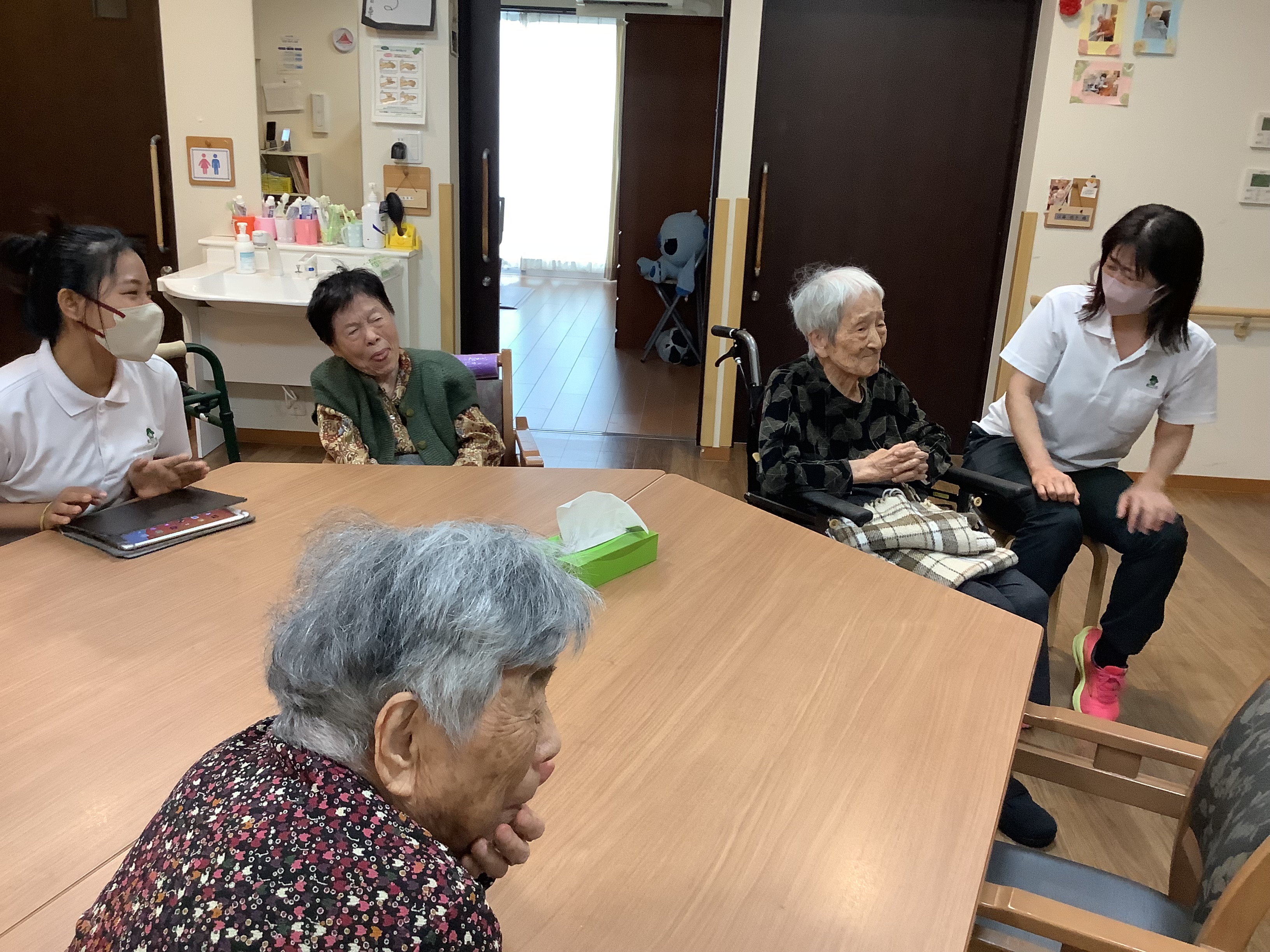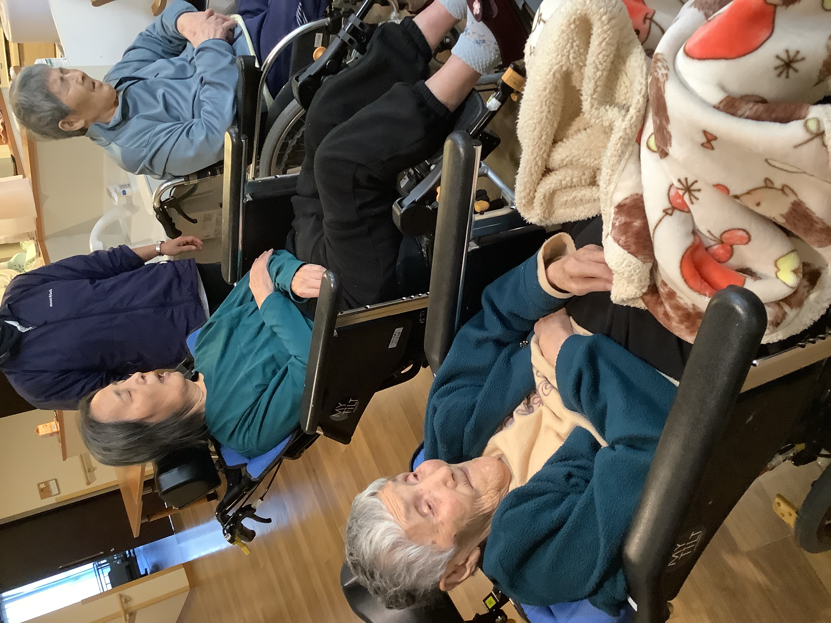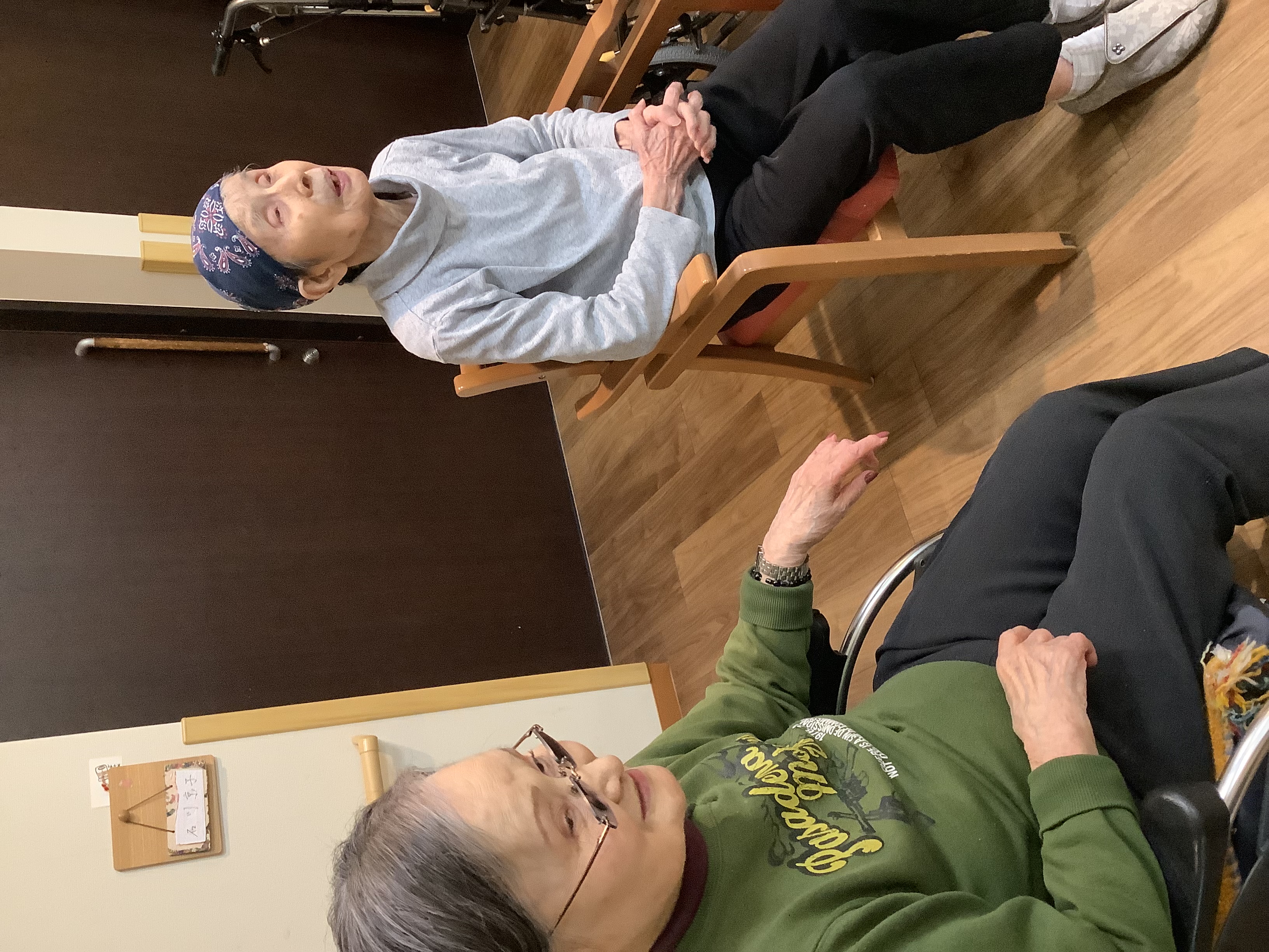 まごころタウン静岡9番街日常の様子です♪職員とテレビを見て談笑中❣️今日もゆったりとした時間が流れています☺️