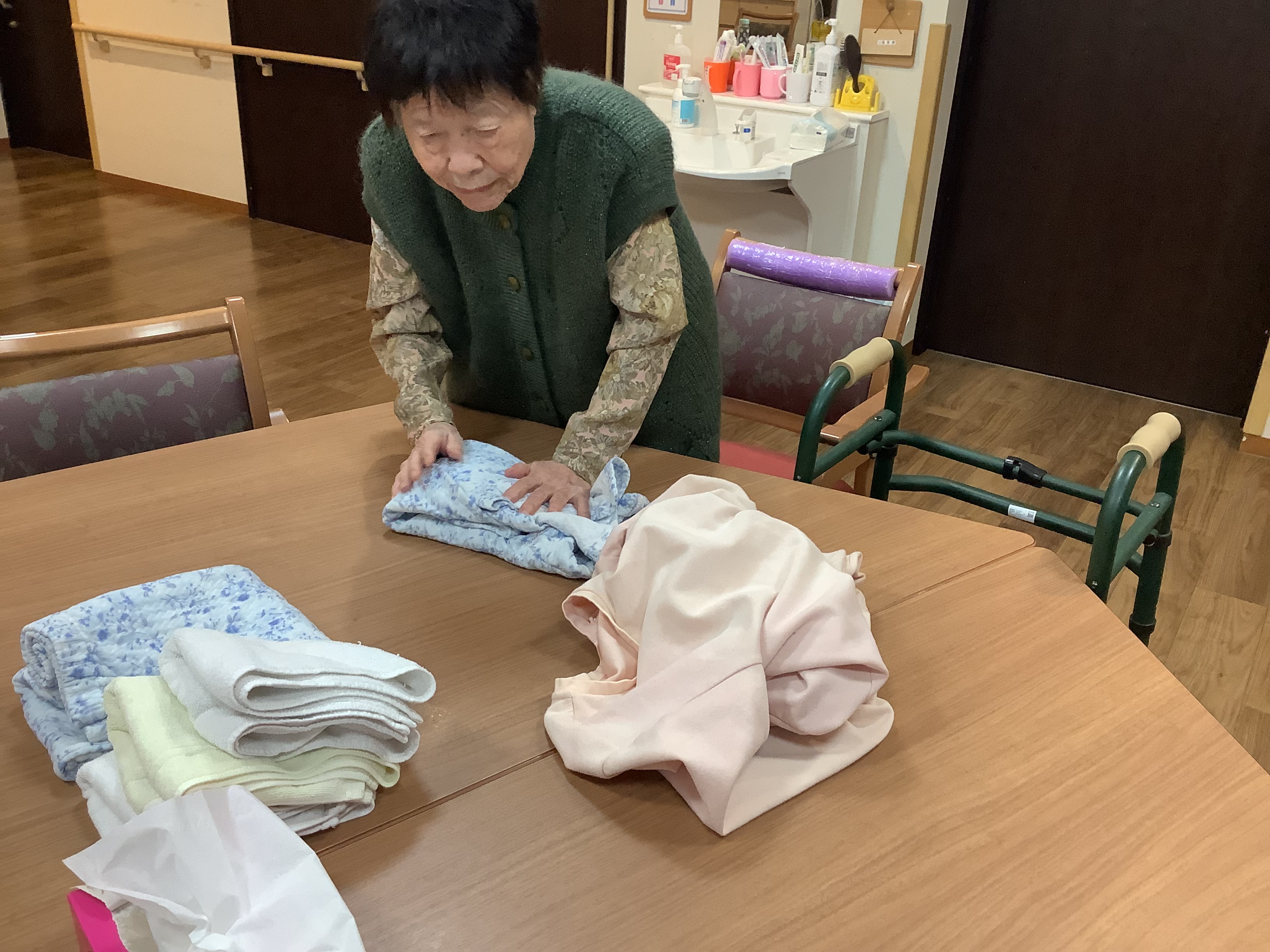 まごころタウン静岡9番街では、生活リハビリとして洗濯物たたみなど出来ることは皆様にご協力いただいています⭐️「もっとあればやるよ‼️」と明かるい会話が飛び交います。