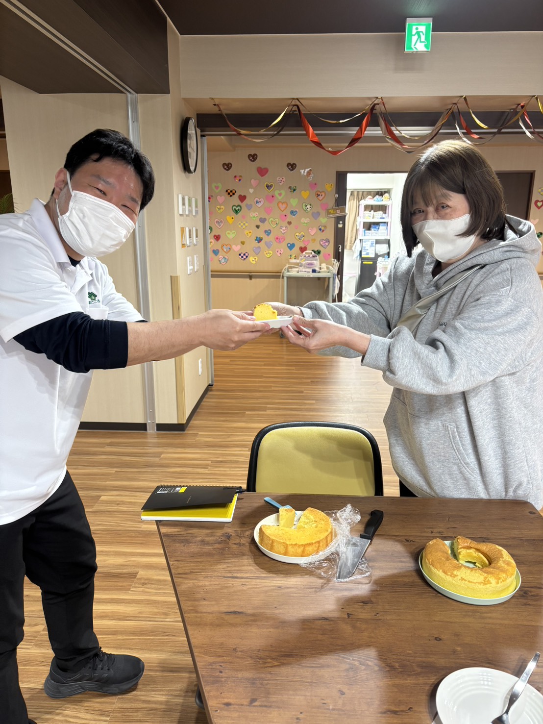 先日おやつレクの準備でたまごが足らなくなったとのことで、慌てて買いに走ったご褒美におすそ分けを頂戴しました。施設長はお買い物にも走ります。えぇ?決してパシリではございませんよ(笑)「ありがとうございます。」「ごちそうさまでした。」