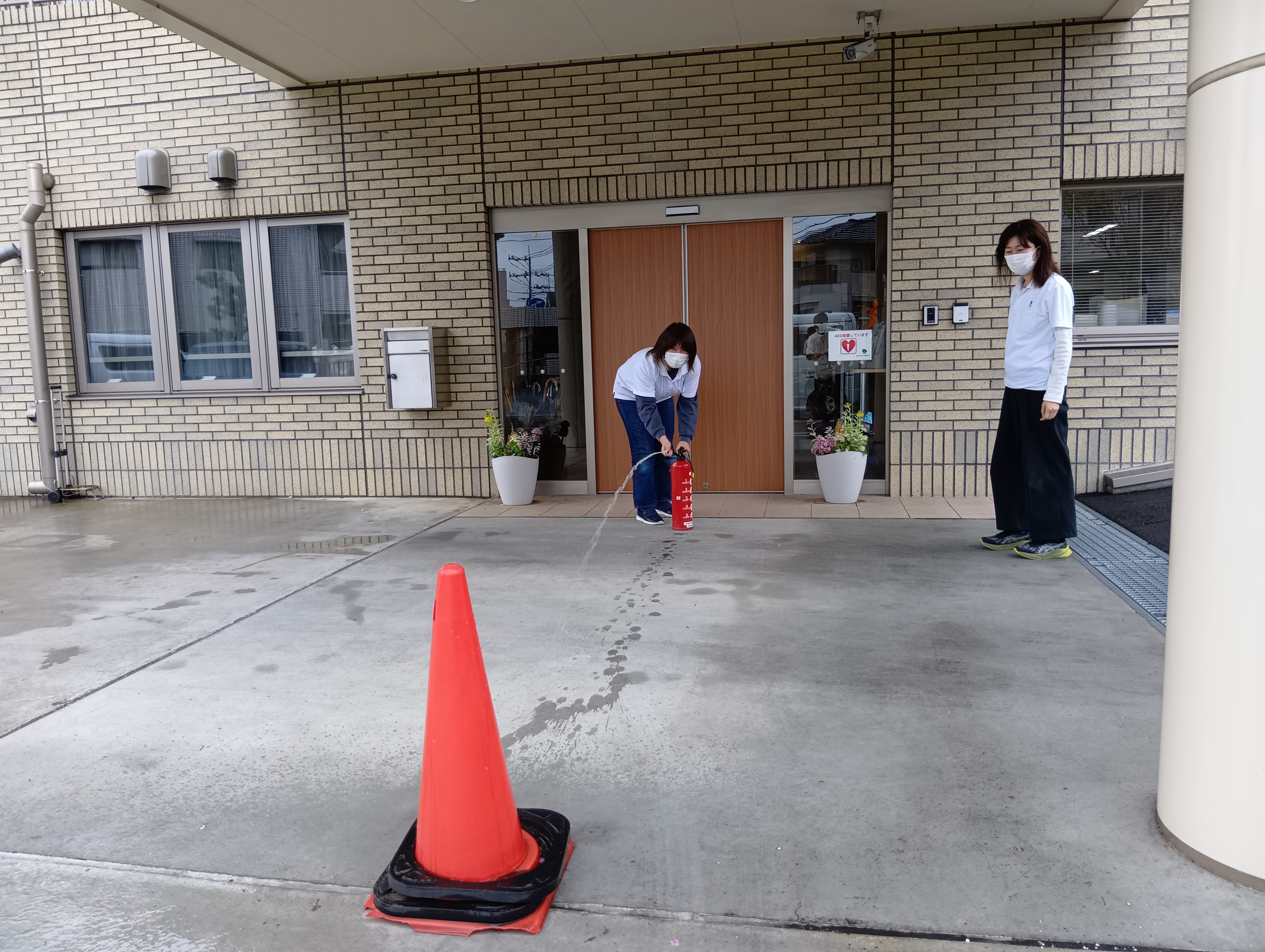 こんにちは!事務所の土田でございます。先日は3月末に消防署からお借りした水消火器で消火訓練を実施!カラーコーンにめがけて実施しました。落ち着いて対処できるのが一番ですが日頃からこういったことに触れておくのも大切ですね。施設の安全はみんなで守る!以上百合丘からでした!
